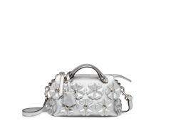 芬迪Fendi SELLERIA手袋 浅亚麻色罗马皮革波士顿手袋,饰有手工缝线和烫印品牌标志。单提手,带吊坠和可调节可拆卸肩带。大号拉链,带双拉链头,衬里有拉链口袋和两个平盖袋。银色SELLERIA铭牌,镌刻序列号。