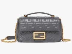 芬迪女包中国官网价格新款 Fendi Iconic Baguette 中长链手袋 深灰色皮革