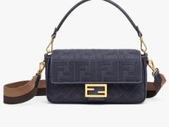芬迪女包官网价格新款图片 Fendi Iconic Baguette 中号 深蓝色FF帆布手袋