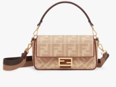 芬迪女包官网价格新款图片 Fendi Iconic Baguette中号 手袋 米色FF帆布手袋