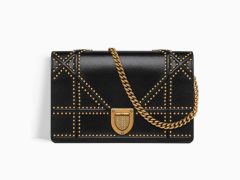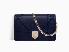 Diorama石油蓝色小羊皮Wallet on Chain皮夹,缀以饰钉