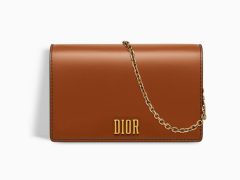 Dioraddict灰蓝色藤格纹小羊皮Wallet on Chain皮夹,缀以饰钉,搭配复古金色金属标志锁扣。