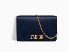 J’adior金色金属光泽粒面触感小牛皮小皮夹,搭配提手和复古金色金属J’adior标志。