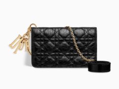Diorama靛蓝色Archicannage藤格纹图案小羊皮verticale皮夹,缀以饰钉,搭配复古金色金属配饰。