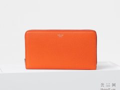 Celine 大号橙色转鼓幼牛皮多功能拉链钱包