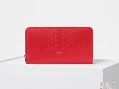 Celine Python大号亮红色蟒蛇皮和光滑小羊皮多功能拉链钱包