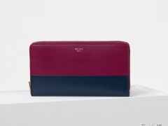 Celine Solo大号梅李紫和钢铁蓝双色光滑小羊皮多功能拉链钱包