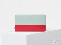 Celine Solo大号翠玉绿和亮红色双色光滑小羊皮多功能拉链钱包