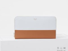 Celine Solo大号荧光白和褐色光滑小羊皮多功能拉链钱包