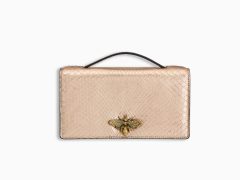Dior迪奥 暗粉红色亮面尼罗鳄鱼皮皮夹,搭配把手和复古金色金属蜜蜂珠宝装饰锁扣。