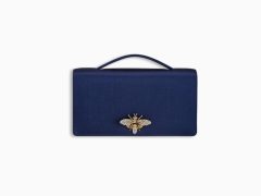 Dior迪奥 金粉色金属光泽蟒蛇皮皮夹,搭配把手和复古金色金属蜜蜂珠宝装饰锁扣。