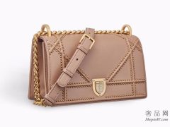 dior包包官网价格“Lady Dior”乳灰色珠光藤格纹小羊皮袖珍手提包