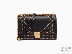 2015年春夏季成衣系列时装秀推出的Diorama手提包布局有致,新潮时尚。这款黑色小羊皮覆盖式手提包,采用极具几何感的超大藤格纹装饰。银色金属盾形纹章式锁扣,体现全新Dior迪奥女性特色。