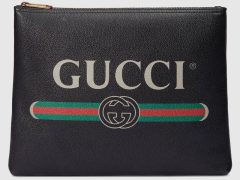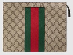 Gucci 老虎印花GG Supreme高级人造帆布手拿包