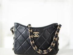 CHANEL包包香港官网专卖店价格表 24K粗链条HOBO腋下包 黑色