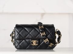 CHANEL女包中国官网价格图片 新款24K 迷你黑色粗链条腋下包