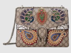 Gucci古驰 酒神包 Dionysus 蟒蛇皮肩背包款式 400235 LRO1X 9385具有结构感的蟒蛇皮肩背包,配以织纹虎头扣。滑动链条包带有多种背法,可在肩背和手提之间自由转换。