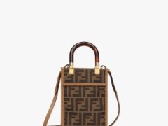 芬迪包官网旗舰店 Fendi Sunshine迷你手提袋 棕色FF布料迷你手袋