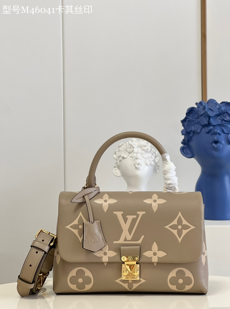M46041 LV MADELEINE 中號手袋 壓紋皮革手提單肩包 卡其色