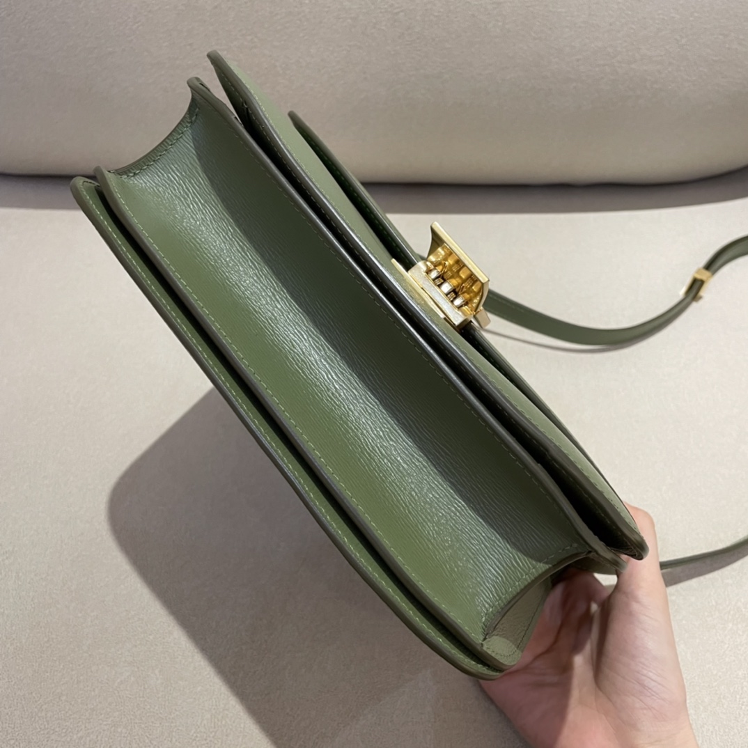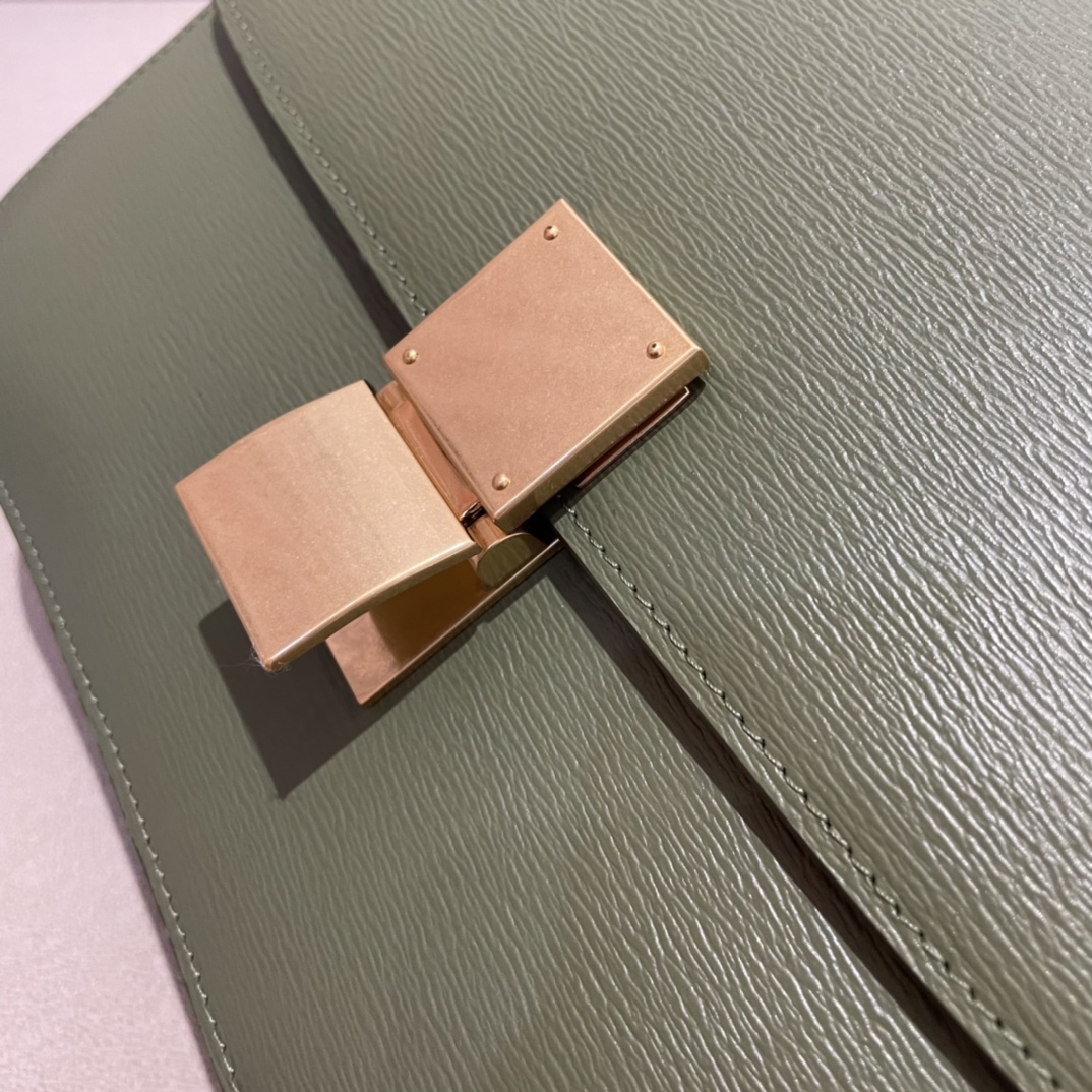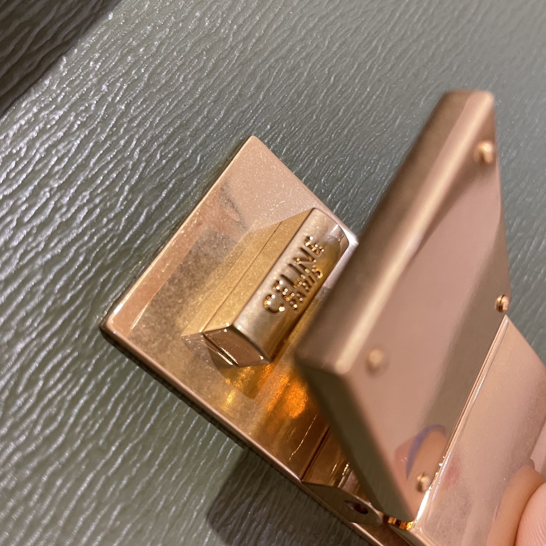 CELINE BOX整個包的五金部分都是純銅表面電鍍24k真金,五金表面的做舊效果是通過振機打磨,也就是機器反複撞擊後形成的“磨花”效果,不過要強調的是,雖然五金看起來“磨花”,實際上表面非常的光滑。