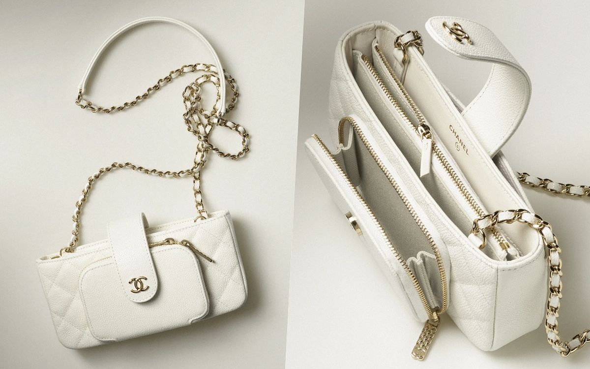 雖然包款名稱是手機套,但卻不只可放得下手機,還有其他多個超實用的夾層,完全能當作日常WOC小包使用,粒紋小牛皮也增加了耐用性,純白色的小包更能瞬間提亮穿搭。