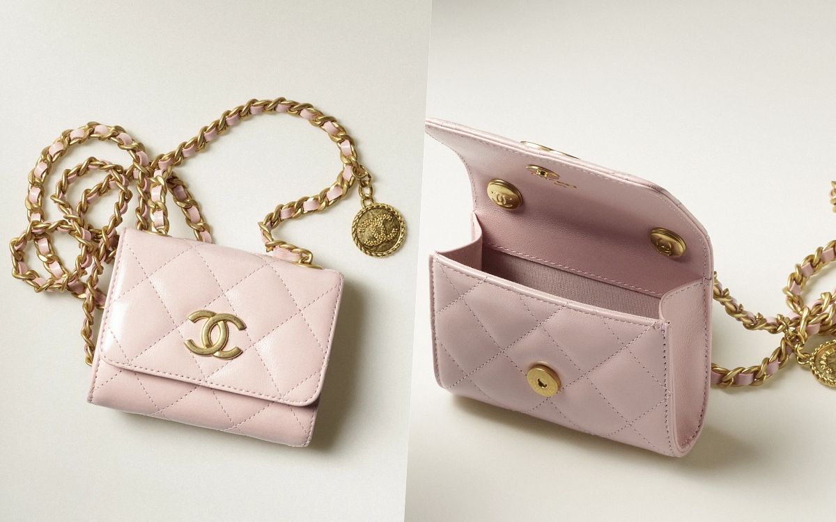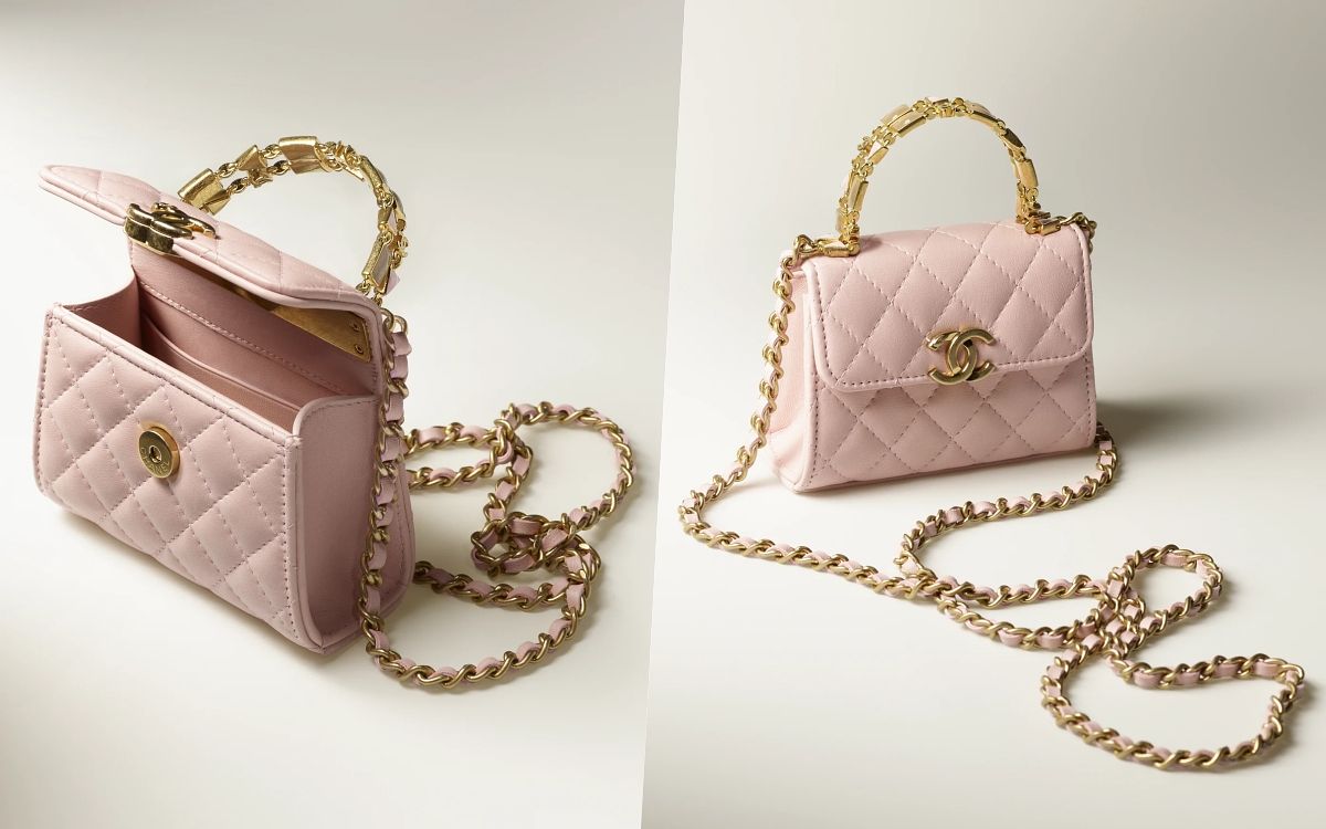 香奈兒的小型梯形方包小巧又實用,以本季的特色裝飾琺琅裝飾提把,既華麗複古又獨特,皮穿鏈可肩背、斜背,實用性更提升,黑色經典百搭,完全是最新的夢幻包,而淡粉色以不到十萬的價格,真的很值得入手!