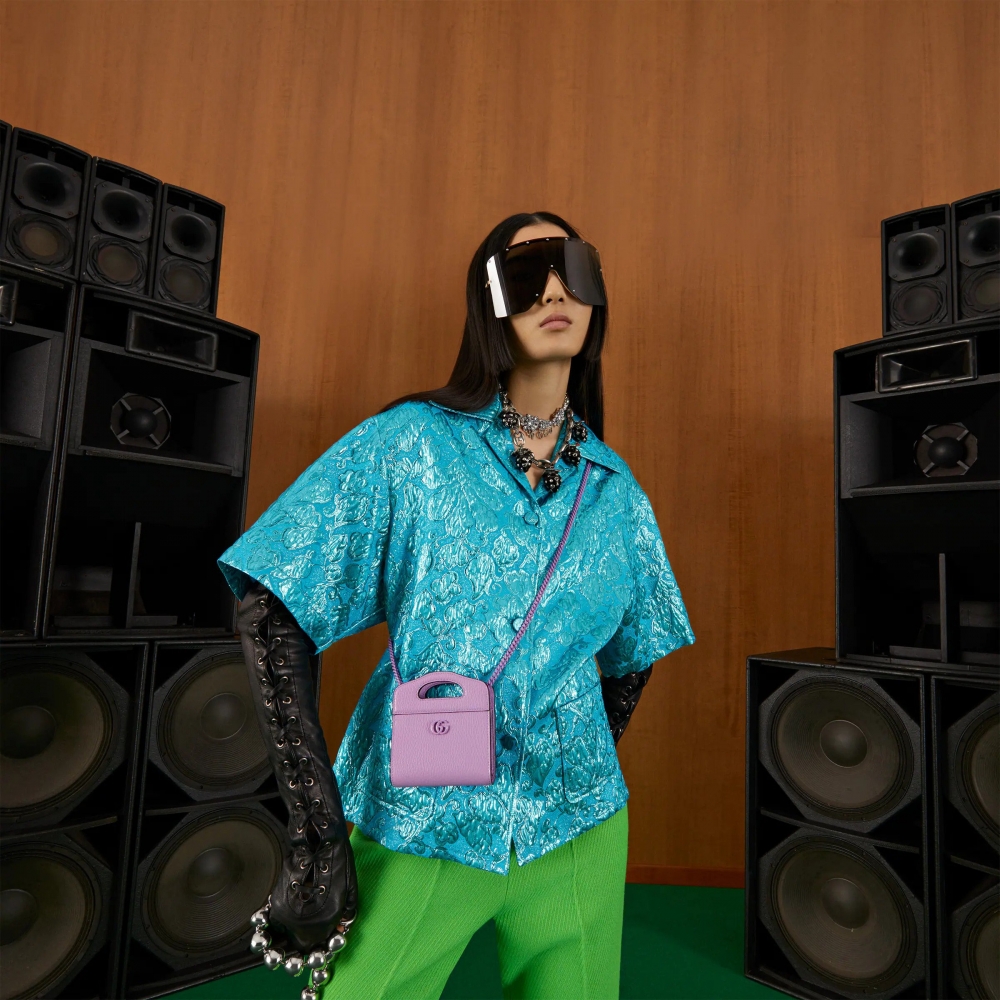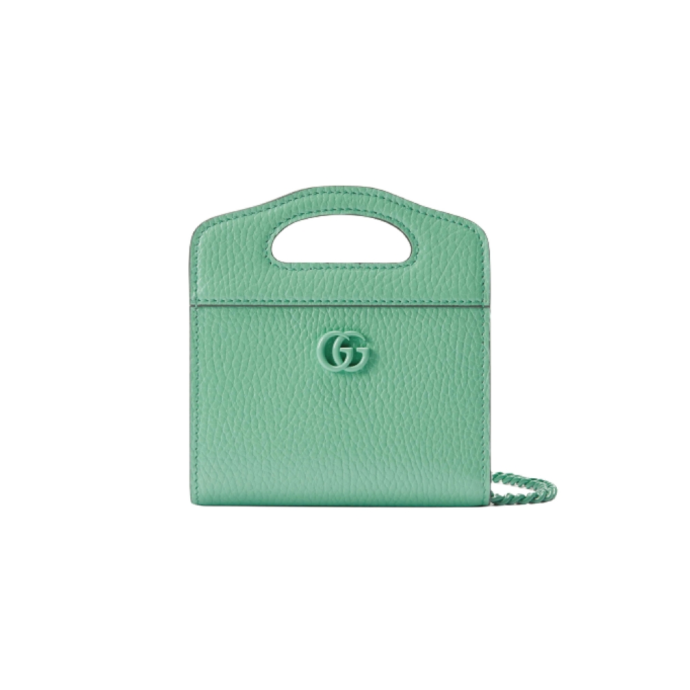手提包的縮小迷妳版本,成爲壹款小巧的卡片包,以舒服清新的薄荷綠色姿態登場。同時設有壹條相襯的背帶,壹眼可辨的同色系雙G徽標。