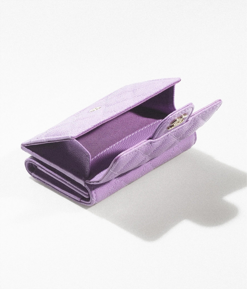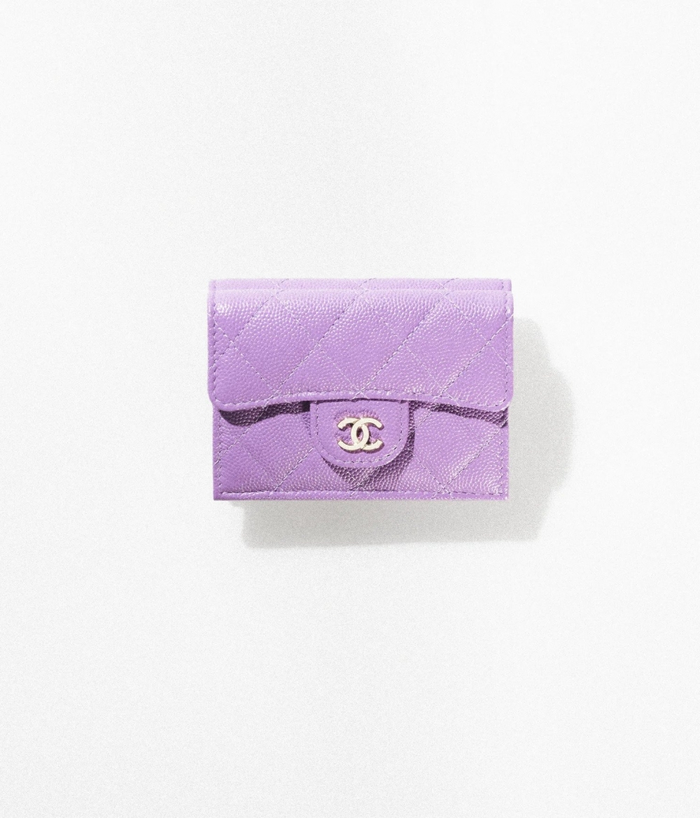 若說壹個夢幻的象征,CHANEL絕對是第壹,此款銀包也不例外,閃亮的紫色粒面小牛皮體現輕松的高級感,飾有的金色金屬雙C Logo,美得讓人十分渴望。