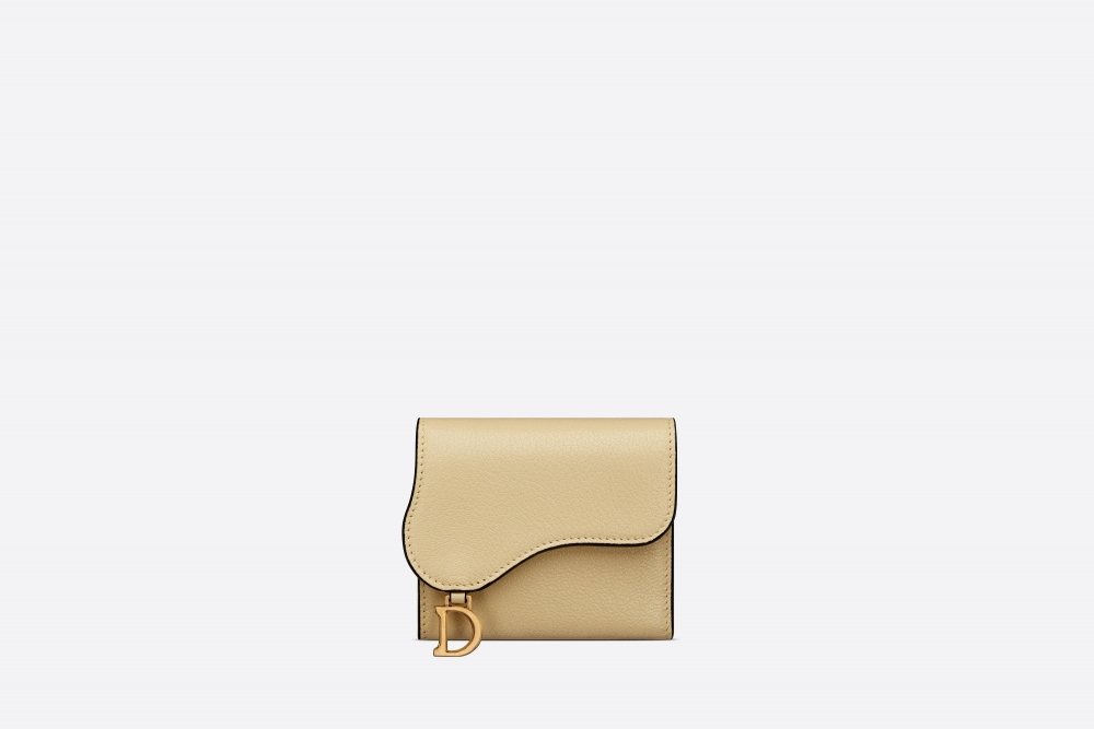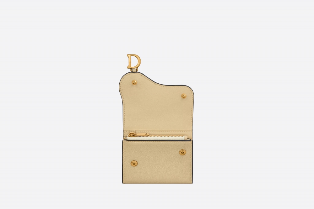 以馬鞍設計縮小的銀包,淡黃色的羊皮展現悠然自得的氣息,搭配上不對稱翻蓋與複古金屬D型馬镫吊墜,經典之中散發淡淡的優雅氛圍。
