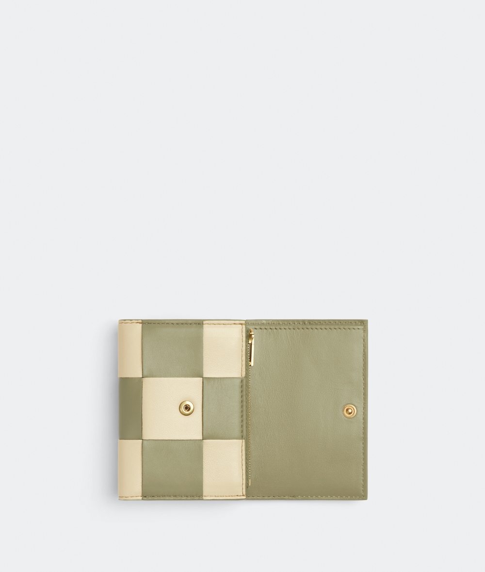 3、Bottega Veneta Tri-Fold Zip Wallet