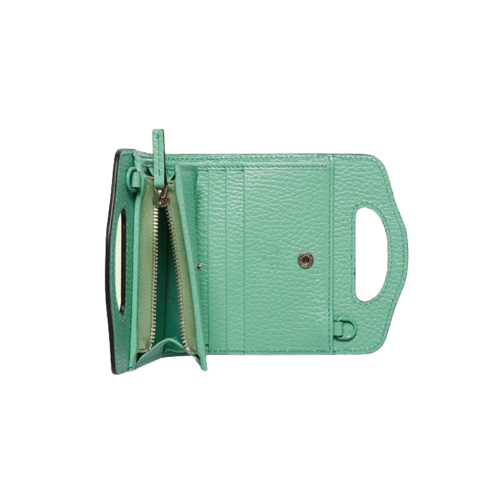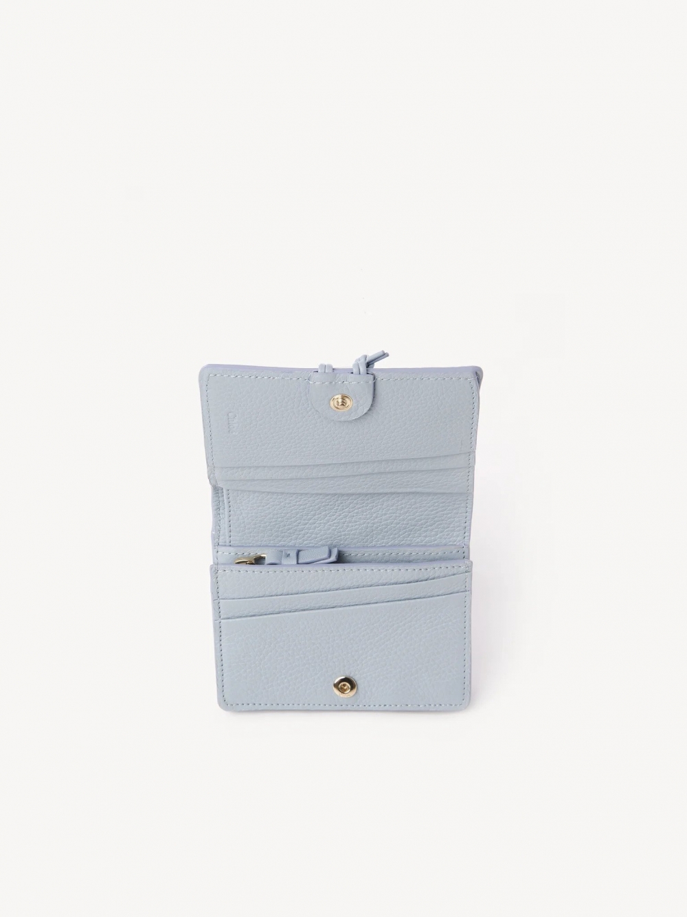 Chloé銀包也是不少溫和性格的女性考慮的選擇,此款以粒面小牛皮打造,淡淡藍色調呈現優雅的氛圍。搭配飾有Chloé徽標元素的翻蓋,有種微妙的經典體現。