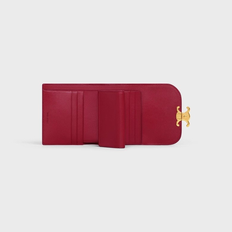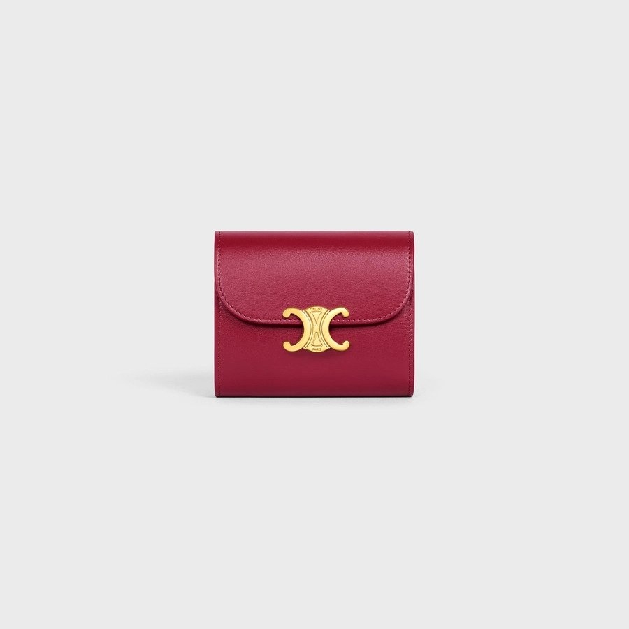 由光滑的胭脂紅小牛皮打造的Triomphe Wallet,深邃的顔色能讓人營造成熟穩重的氣質,加上金屬凱旋門作爲按扣閉合,大方又高調。