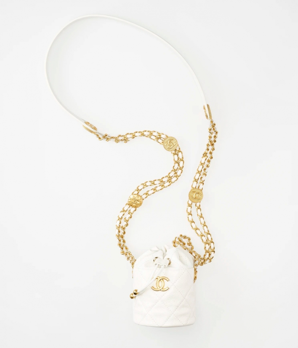 可愛的水桶包是手袋設計中最受喜愛的造型之壹,這次在2021/22 Métiers d’Art之中我們也看見了迷妳款水桶包Mini Bucket with Chain。它小巧玲珑與複古的寬鏈條設計,更是讓人壹見傾心。