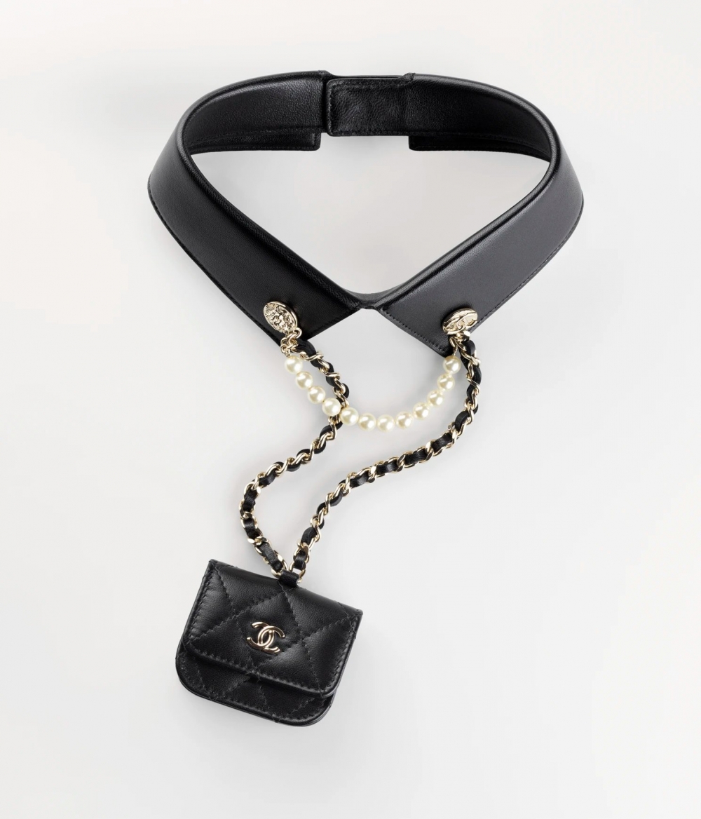 衣領也能是Airpods Pro收納袋,這款Collar with Airpods Pro Case或許是許多商務人士或是熱愛音樂時尚迷的救星,讓妳在出席重要場合時依舊可以配戴,讓妳隨時都能獲得妳的Airpods Pro。在設計中加上壹串珍珠更是讓它增添的高貴質感。