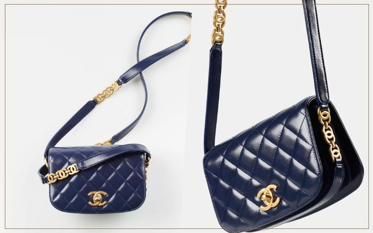 經典海軍藍色爲香奈兒的隽永經典帶出新風貌,剛剛好的內斂在精致細節妝點之下,成爲日常最百搭又出衆的手袋,迷妳郵差包側邊金屬煉帶以雙C標志交織诠釋、萦繞豐富新意。
