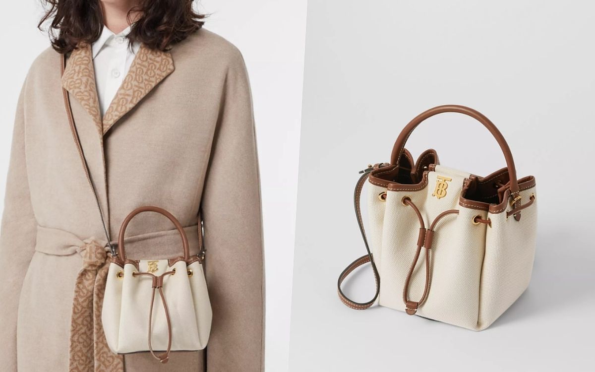 可愛的TB水桶包壹直都是很受到歡迎的經典手袋,本季新上架的帆布款式以奶油色調帆布拼接牛皮、率性又具備優雅感受的樣貌讓人心動不已。