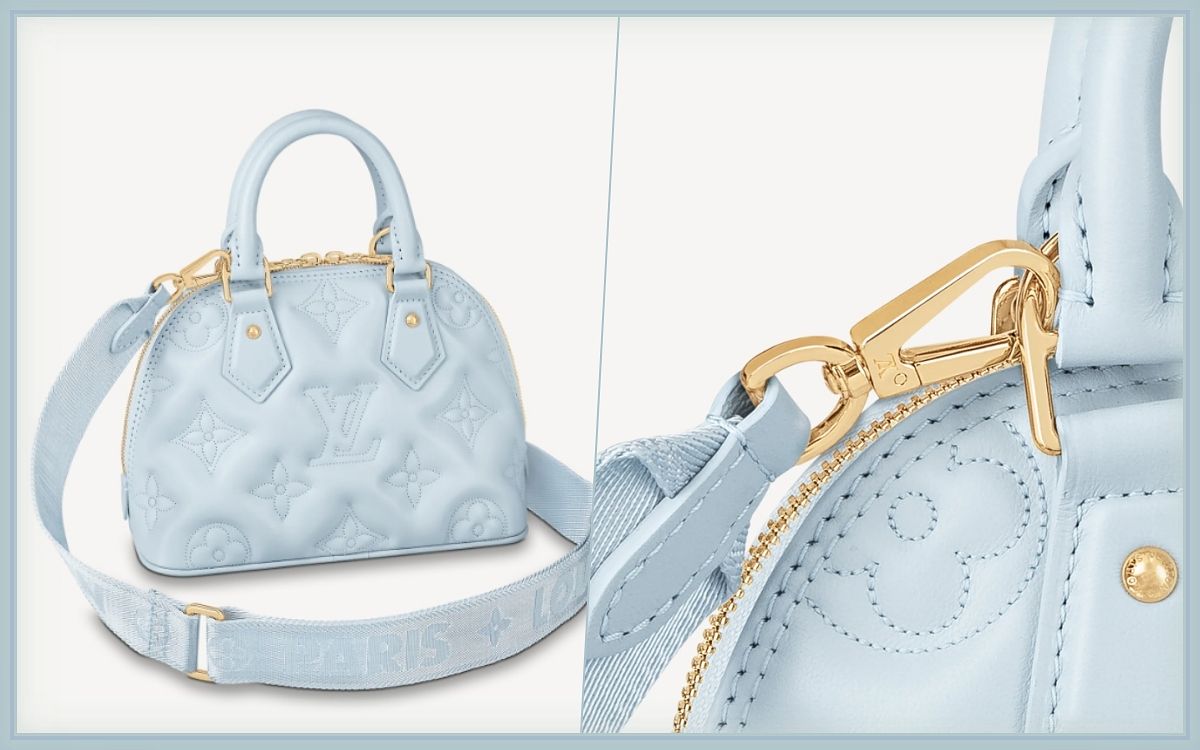 LV壹直非常受到歡迎的精巧手袋,貝殼型的輪廓讓包款在收納上更大化,這款BUBBLEGRAM系列Alma BB包款以縫绗小牛皮制作,包身點綴了柔軟Monogram圖案刺繡,清新亮眼的冰川藍色調讓簡約包款更充滿新意,蓬松手感令人愛不釋手,另外可拆式和可調節長度的肩帶攜帶靈活性直拿滿分。