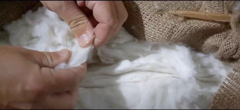 先是由专业的羊绒专家筛选上等的羊绒,手工抽丝检验。