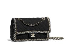 香奈儿Chanel 黑色口盖包 丹宁 编结与金色金属