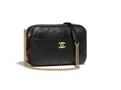 香奈儿Chanel 相机包 黑与酒红小牛皮、罗缎与金色金属