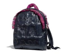 香奈儿Chanel 双肩背包 海军蓝与桃红尼龙、斜纹软呢与银色金属