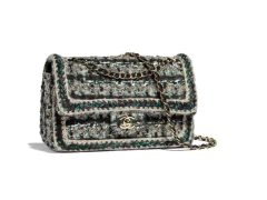香奈儿Chanel 金色黑色 绿与白色 斜纹软呢 编结口盖包