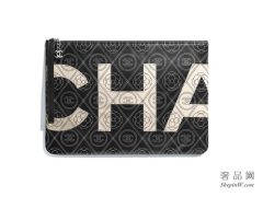 2018春夏系列 香奈儿CHANEL 黑与米色 印花帆布 小牛皮 随身包