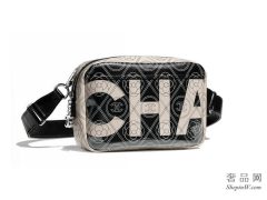 香奈儿CHANEL 2018春夏系列 相机包 黑与米色 印花帆布 小牛皮 PVC