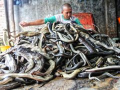 实拍印尼蛇屠宰场 成千上万条蛇被屠宰 剥皮满足西方人制成奢侈品