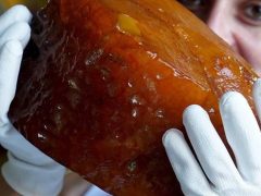 加里宁格勒琥珀工厂挖出十分罕见太阳石“琥珀” 呈罕见“龙血色”价值特殊