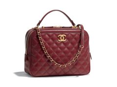 香奈儿Chanel 化妆包 酒红色 小牛皮与金色金属