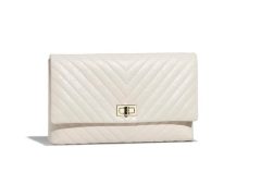 香奈儿 Chanel 晚宴包 象牙白复古小牛皮与金色金属