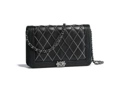 香奈儿chanel 黑色小羊皮、链子、钌色 Boy Chanel链子钱包