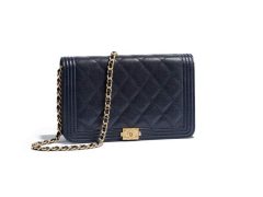 香奈儿chanel 海军蓝 颗粒压花小牛皮 Boy Chanel链子钱包